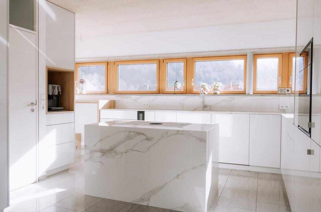 Luxuriöse Küche. Verbaut sind hochwertige Geräte von Bora und Quooker.